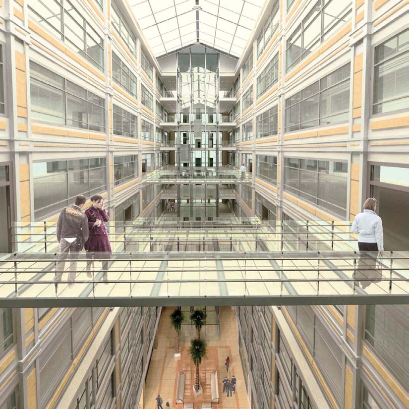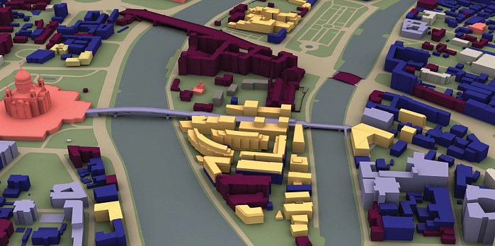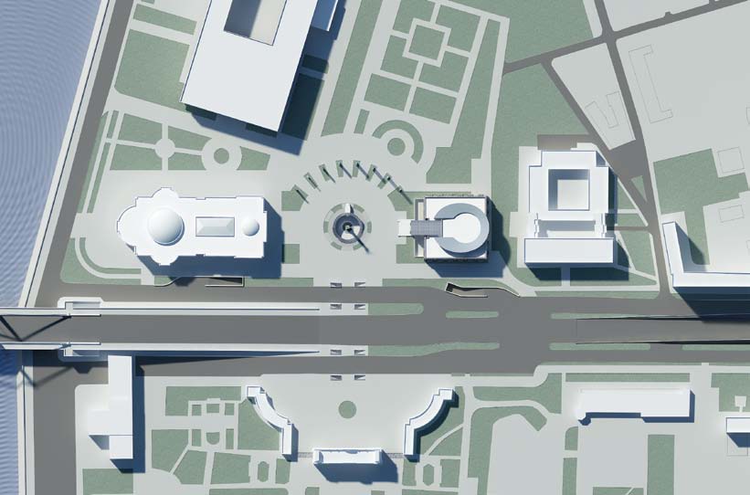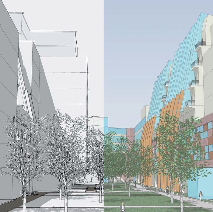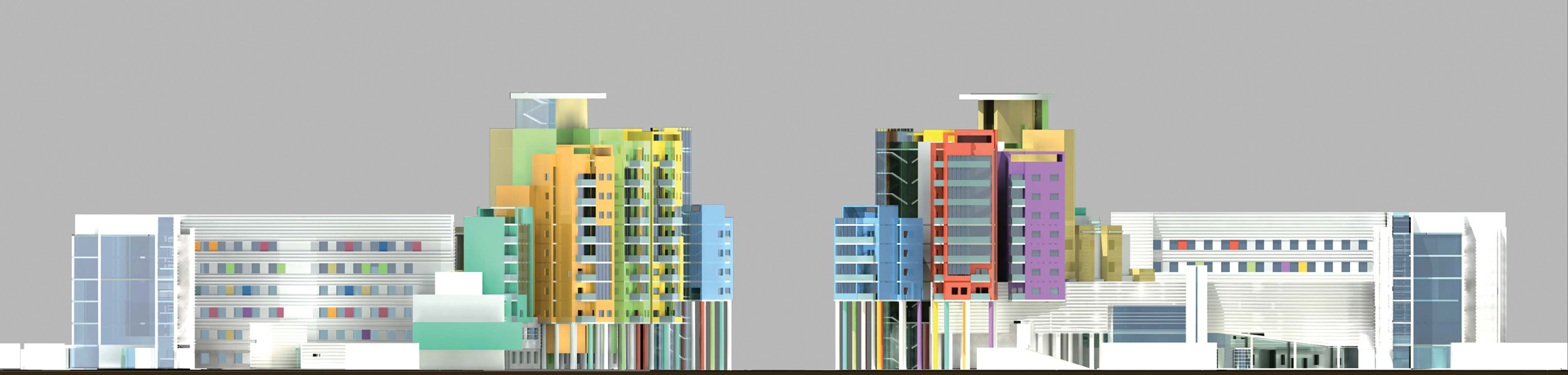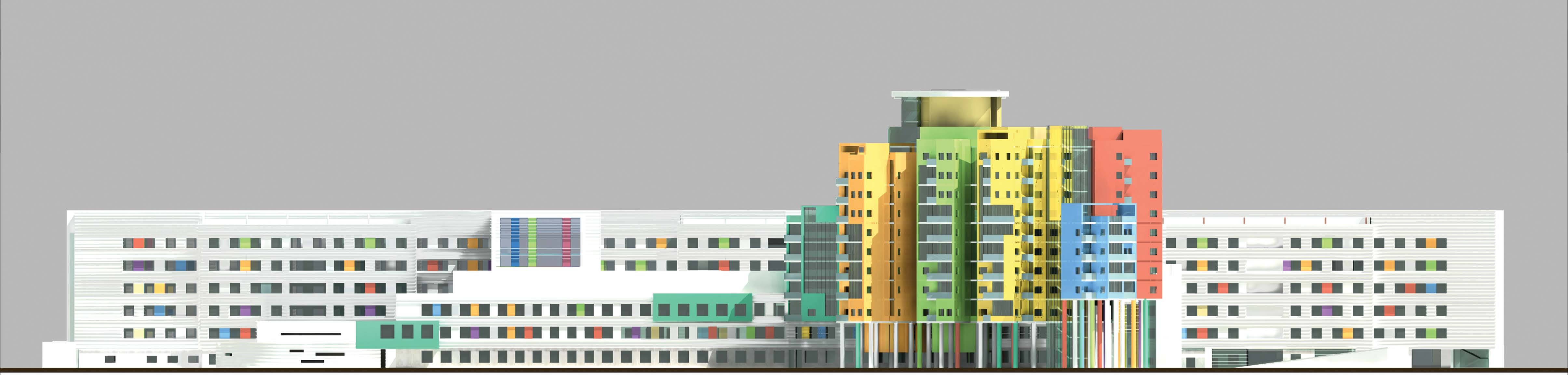 М. М. Посохину как автору и руководителю авторского коллектива при проектировании такого серьезного медицинского учреждения удалось решить важнейшие задачи: организовать комплекс в моноблоке — единой системе взаимосвязанных объектов переменной этажности; создать максимально компактную схему комплекса, позволяющую сбалансировать большие строительные объемы и многообразие функциональный связей; минимизировать воздействие на комплекс, особенно на подразделения детского стационара, близлежащей крупной транспортной магистрали; обеспечить наиболее эргономичные связи и подъезды ко всем блокам центрального корпуса и вспомогательным зданиям комплекса.